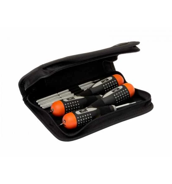 - Set bestehend aus vier ERGO Drehmomentschraubendrehergriffen (fest voreingestellt auf 0,9 – 1,2 – 1,4 und 3 Nm) mit vier TORX und vier TORX Plus Klingen. In praktischer Stofftasche mit Reißverschluss und Laschen zur Aufbewahrung und Transport. Set besteht aus den Artikeln BE-6990-IP7, BE-6990-IP8, BE-6990-IP9 und BE-6990-IP15