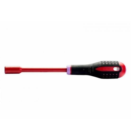 - Gemäß VDE isolierter ERGO Sechskant-Steckschlüssel mit schlanker Bohrung für Sechskantschrauben, Bolzen und Muttern
