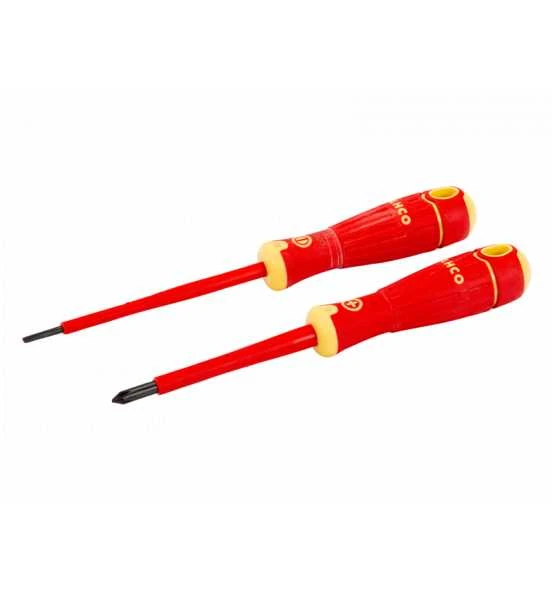 - Satz beinhaltet isolierte gemäß VDE zertifizierte Schraubendreher für Schlitz- und Phillips-Schrauben