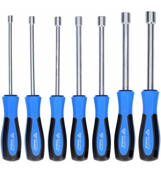 Dieser 7-teilige BRILLIANT TOOLS Stecknuss-Schraubendreher-Satz BT031070 mit Sechskant-Steckschlüsseln von 5 bis 12 mm, eignet sich für vielfältige Schraubarbeiten. Dank der Innenbohrung auch für überstehende Gewindeschäfte. Eine komfortable Handhabung der Werkzeuge bieten die ergonomisch geformten Mehrkomponenten Griffe. Für den langlebigen Einsatz auch bei starker Beanspruchung sind die Werkzeuge aus Chrom-Vanadium-Stahl gefertigt und matt verchromt.