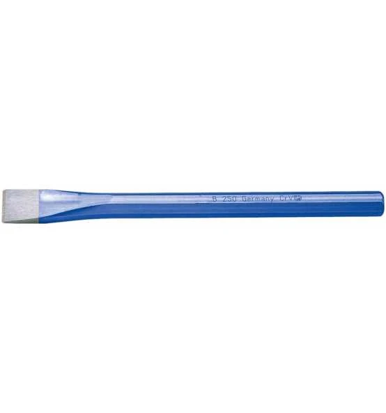 Achtkantig, DIN 7254 B. Aus Chrom-Vanadium-Lufthärtestahl, Schlagkopf vergütet. Wulstbildung, Umbördeln und Absplittern wird durch die Vergütung fast ausgeschlossen. Schaft gehärtet und angelassen. Nachschärfen der Schneide durch einfachen Nassschliff mehrfach möglich. Oberfläche blau einbrennlackiert.