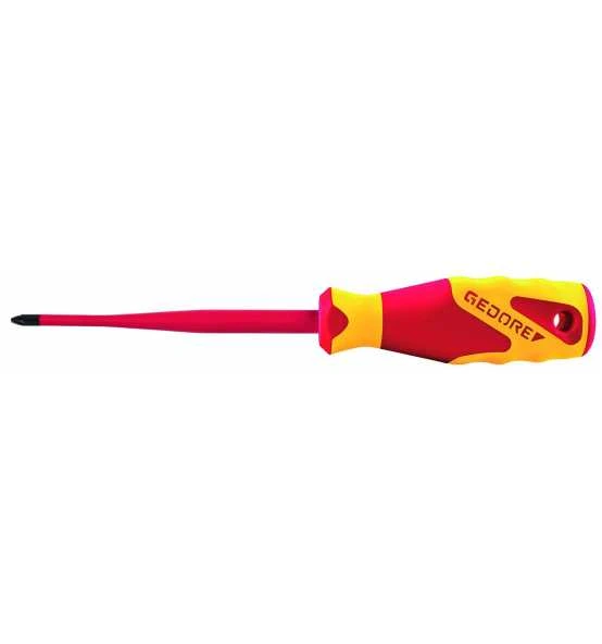 Stückgeprüft, VDE isoliert bis 1000 V, nach EN 60900/IEC 60900, vollisolierte Klinge, 3-Komponenten-Griff Power-Grip³ mit Aufhängeloch, Ergonomische Griffform für präzises, ermüdungsfreies Arbeiten, Formschlüssige Verbindung von Griff und Klinge für optimale Kraftübertragung, Antriebsform-Markierung am Griffende, Ultrakleiner Klingendurchmesser bei voller mechanischer und elektrischer Sicherheit, Tief in Schraubenschächten liegende Schrauben werden problemlos erreicht, Klinge aus Molybdän-Vanadium-Stahl, vergütet