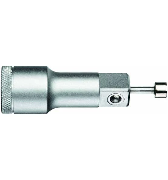 Für handbetätigte Steckschlüsseleinsätze mit Durchgangsbohrung und Vierkantantrieb nach DIN 3120, ISO 1174, mit Kugelarretierung, Der Haltemagnet fixiert die Schrauben oder Muttern im Steckschlüsseleinsatz verliersicher, Einhandbedienung – Die Schraube oder Mutter kann sofort mit dem Steckschlüsseleinsatz eingedreht werden, Das magnetische Feld des Haltemagneten hält Schrauben und Muttern ohne direkten Kontakt zentrisch im Steckschlüsseleinsatz, Starker Permanentmagnet hält selbst große Schrauben fest, Besonders für Arbeiten in beengten Bauräumen geeignet, Vanadium-Stahl 31CrV3, verchromt