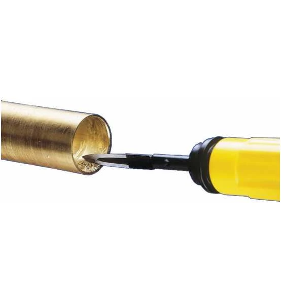 Stabiler Dreikant-Schaber mit längenverstellbarem Klingenhalter. Für Materialabtrag und das Entgraten schwieriger Stellen.