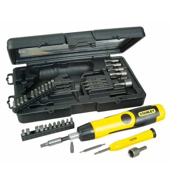 - Ratschen Bit-Set+Gelenkgriff 39-tlg. – 1 Schrauber mit Gelenkgriff 1 Verlängerung 6 lange Bits: Phillips, Schlitz 24 Standard Bits: Phillips, Schlitz, 6-Kant, 4-Kant, Torx