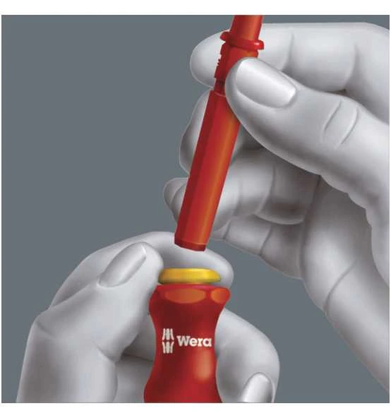 14 VDE-Wechselklingen mit reduziertem Klingendurchmesser, so dass auch tiefliegende Schraub- und Federelemente erreicht und betätigt werden können.